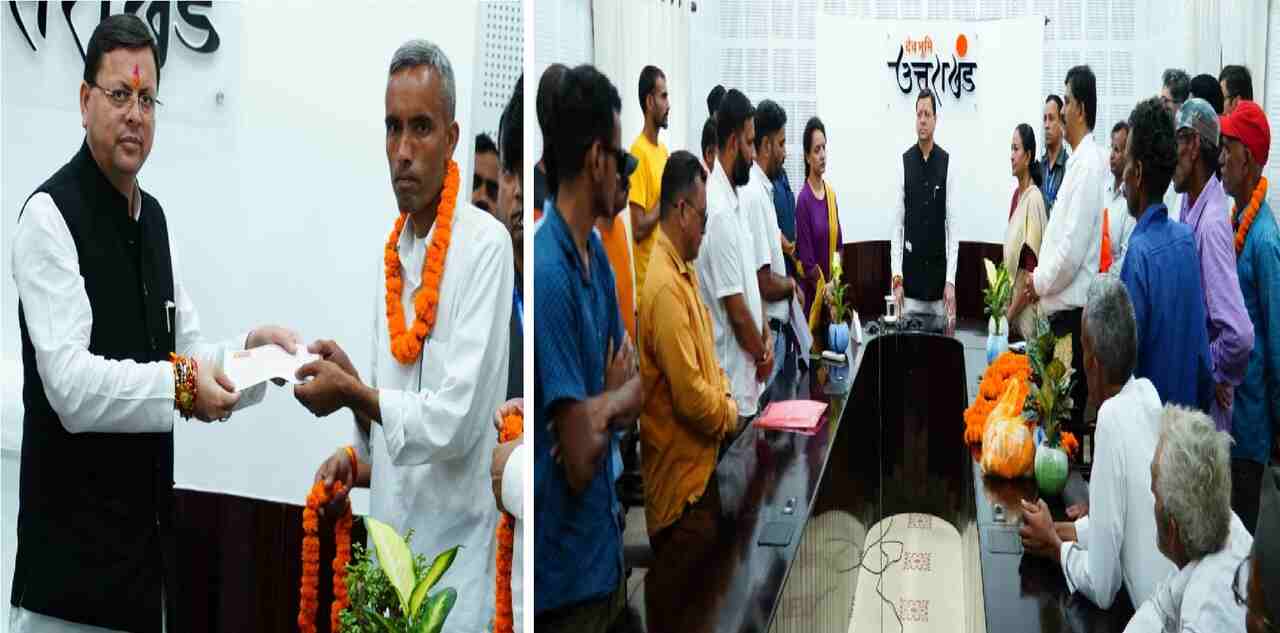 सीएम धामी ने 17 किसानों को, भूमि एवं वृक्षों के मुआवजे के रूप में प्रदान किए कुल 11 लाख 88 हजार 70 रूपये के चेक