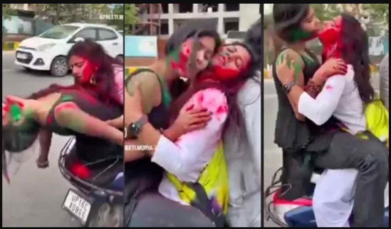 नोएडा में होली के दिन एक वीडियो वायरल हुआ था, जसमें दो लड़कियां चलती स्कूटी पर स्टंटबाजी कर रही हैं. एक स्कूटी पर तीन लोग सवार हैं. युवक स्कूटी चला रहा है. पीछे बैठी लड़कियां एक-दूसरे को रंग लगा रही हैं और फूहड़ एक्ट कर रही हैं. तीनों ही बिना हेलमेट हैं. आसपास खड़े लोग उन्हें घूर रहे हैं. वीडियो के वायरल होने के बाद ट्रैफिक पुलिस ने नियमों के उल्लंघन को लेकर स्कूटी का 33 हजार रुपये का चालान कर दिया था. वहीं सोशल मीडिया पर वायरल वीडियो के आधार पर नोएडा पुलिस ने अश्लीलता फैलाने को लेकर तीनों के खिलाफ केस दर्ज कर लिया है और गिरफ्तारी के लिए उनकी तलाश की जा रही है. यह वीडियो थाना सेक्टर 113 इलाके के सेक्टर 78 का बताया जा रहा है.