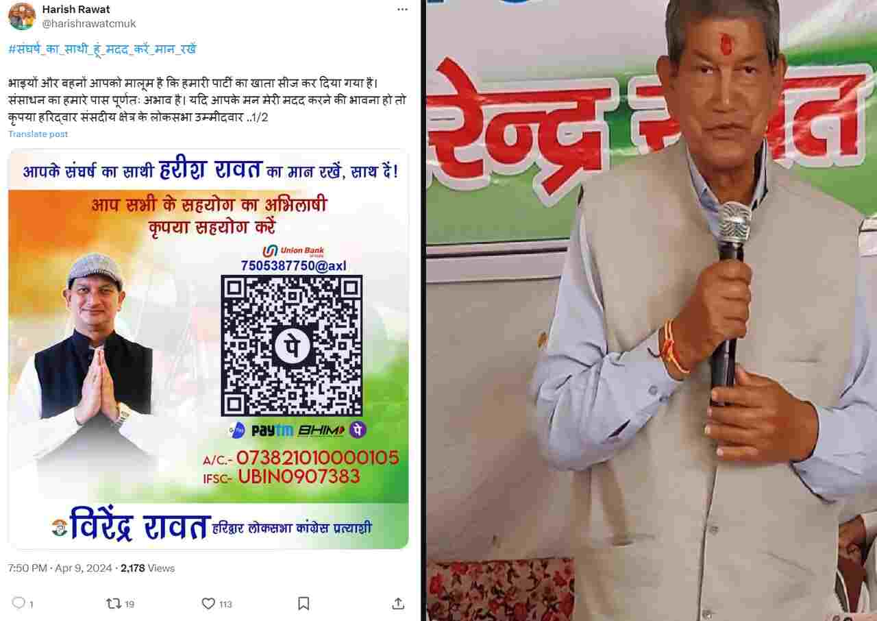 दरअसल हरीश रावत द्वारा अपने सोशल मीडिया पर अपने बेटे वीरेंद्र रावत के चुनाव के लिए आर्थिक सहायता की गुहार लगाई गई है. हरीश रावत के द्वारा कहा गया है कि मैं आपके संघर्ष का साथी हूं. मेरा मान रखें और साथ दे. इसी के साथ उन्होंने कहा है कि आप सभी के सहयोग का अभिलाषी मैं हरीश रावत जैसा कि आप सबको मालूम है कि हमारी पार्टी का खाता सीज कर दिया गया है.