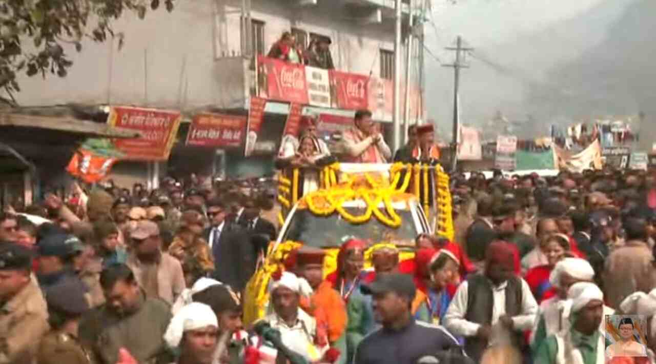 रुद्रप्रयाग : नारी शक्ति वंदन महोत्सव में शामिल हुए सीएम धामी, रोड शो मे उमड़ा जन सैलाब : Video